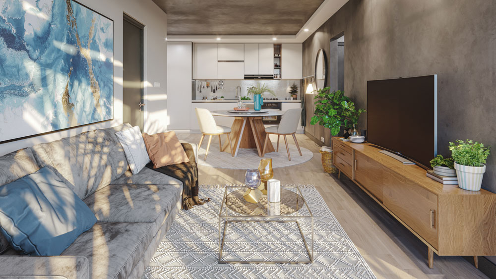 The design embraces its iconic surroundings, featuring a secure and sheltered internal lightwell wrapped by outward-facing apartments. This thoughtful configuration maximizes views, light, and airflow, creating a harmonious connection to nature.