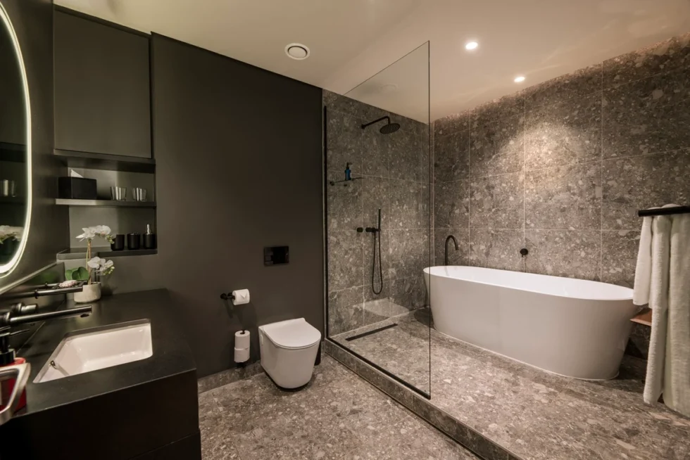 The Rockefeller Hotel and Residence at Harbour Place is one of Cape Town Foreshore’s newest and most stylish lifestyle destinations. Positioned at the bustling corner of Martin Hammerschlag and Christiaan Barnard Streets, this modern building was completed in 2021. Its prime location offers direct access to Cape Town’s major highways, seamlessly connecting residents and guests to Cape Town International Airport, the V&A Waterfront, and popular city landmarks.