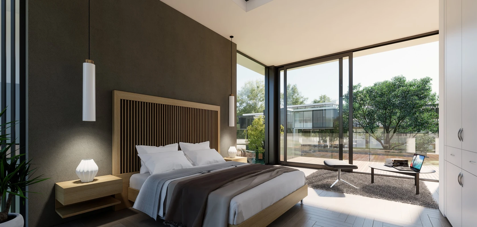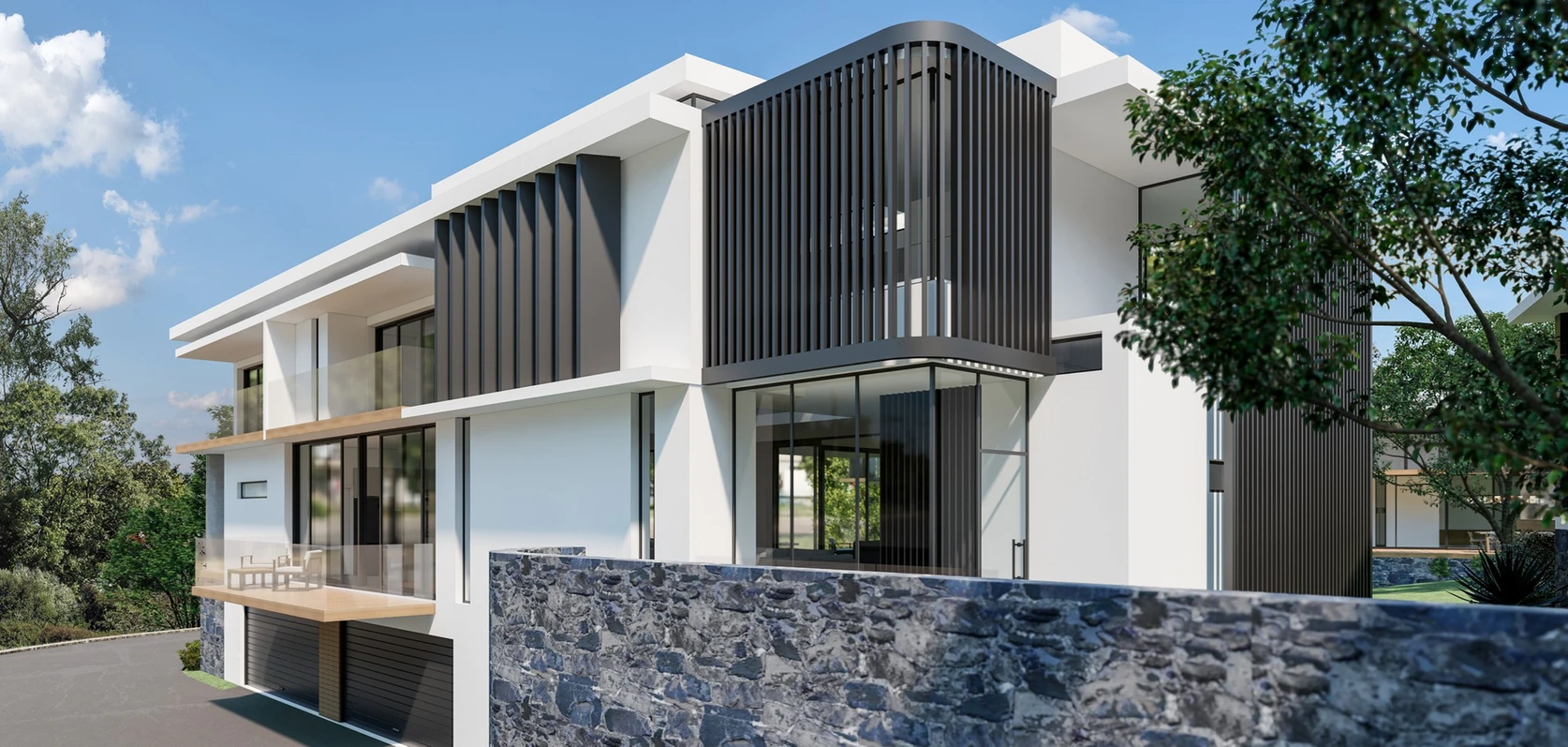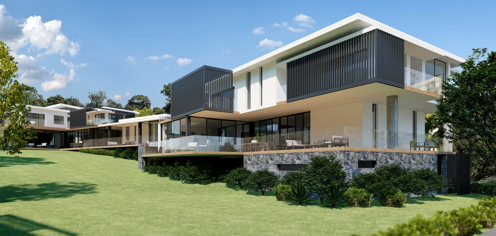 The design draws inspiration from the scenic location, incorporating large glass facades and outdoor living spaces that open up to sweeping views. Natural light and cross-ventilation are maximized throughout each home, creating a seamless blend between indoor and outdoor living. The spacious interiors feature clean lines, modern finishes, and a neutral color palette, offering a calm, sophisticated atmosphere.