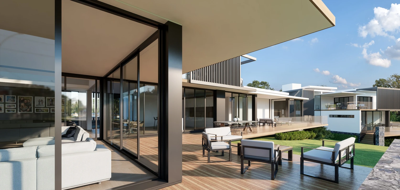 This stylish environment is perfect for hosting guests, with each home offering spacious living areas, patios, and outdoor dining spaces that overlook the beautifully manicured gardens and surrounding landscape.
